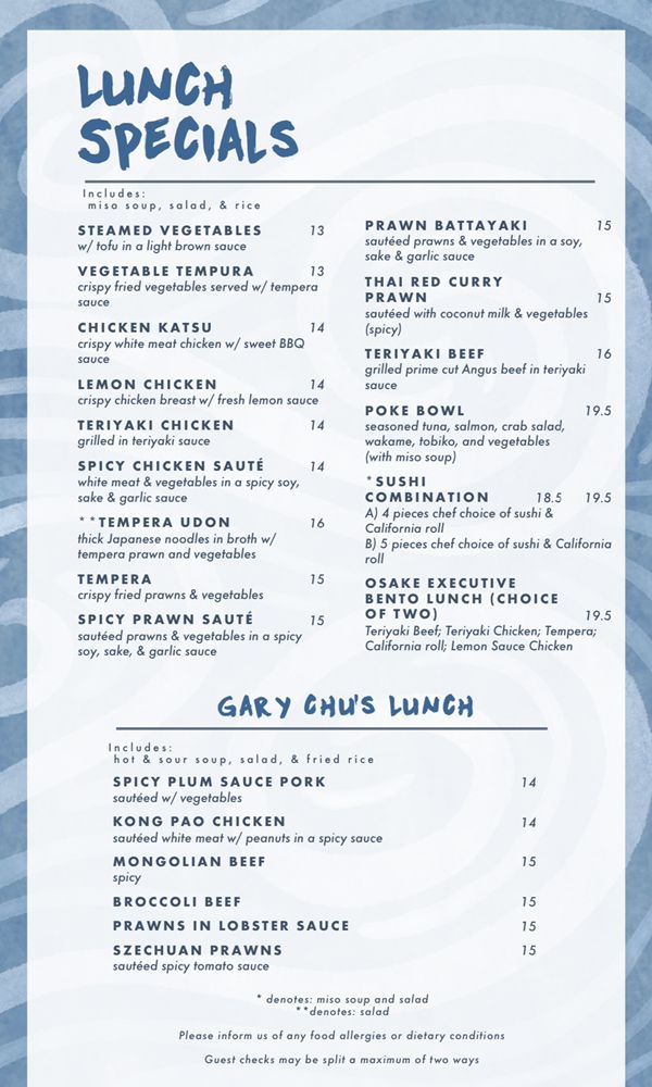 Customer reviews praise Osake for its delectable walnut shrimp martini and fresh sushi with impeccable presentation. The extensive wine and sake lists add a touch of sophistication to the dining experience. While some customers mention a slightly higher price point, they rave about the generous portions and top-notch quality of the fish.